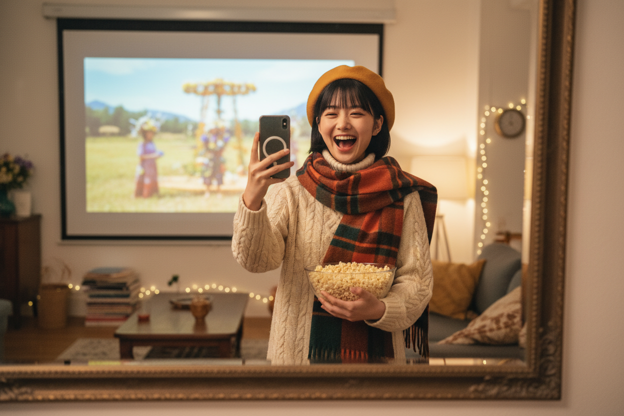 正直、最初は設定に手間取ってプロジェクターのピント合わせに20分も格闘しちゃったけど(笑)、苦労して壁一面に映し出したホルガ村の景色は、もう最高に美しくて最悪に不気味だったよ。これを知らずに2026年の映画ライフは語れない!さあ、あなたも一緒に、あの花冠を被る準備はできた?💖